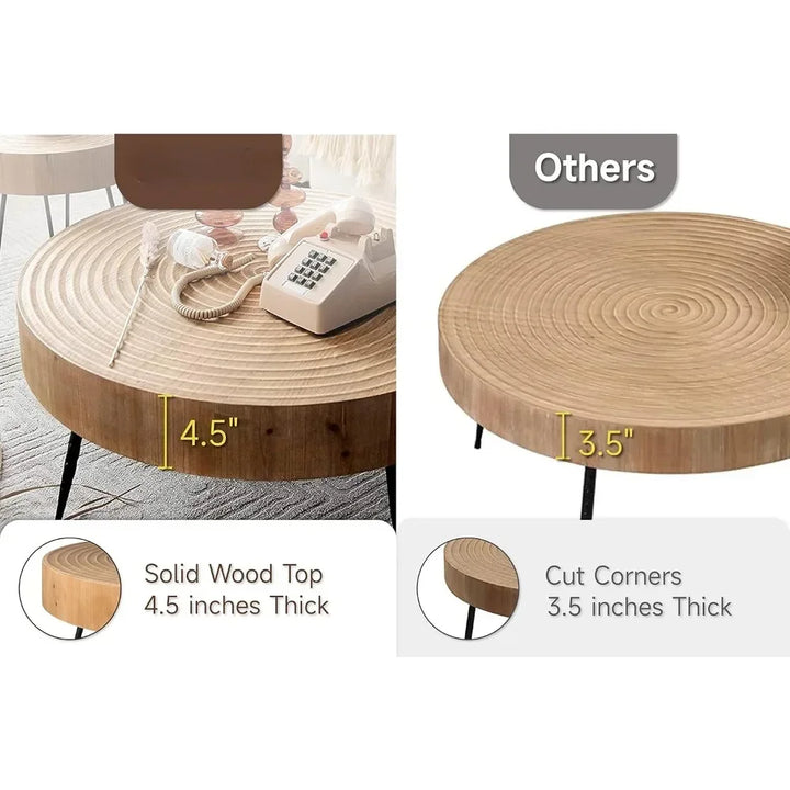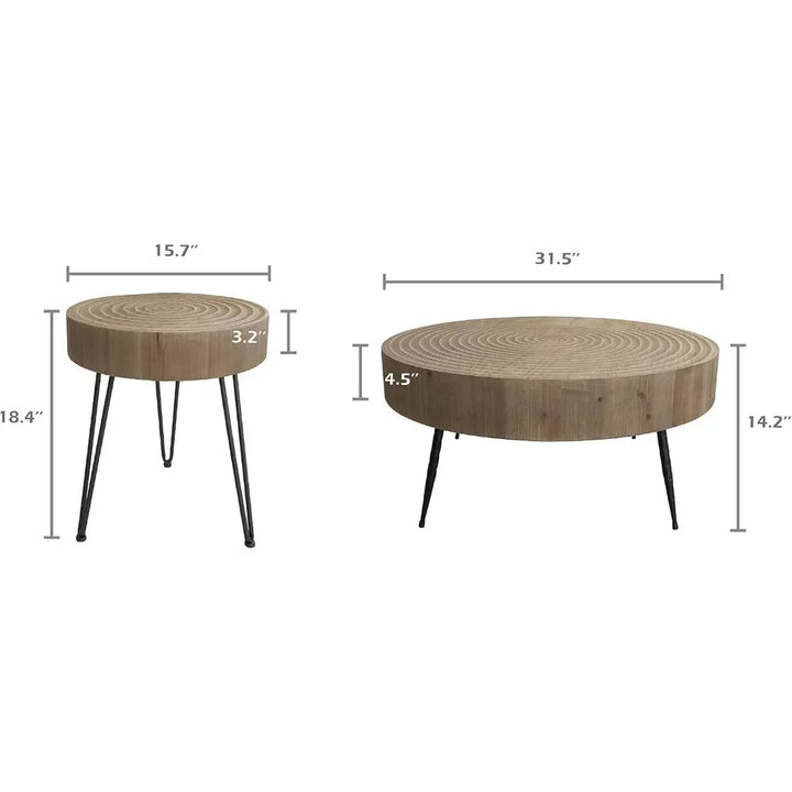2-Piece Boho Farmhouse Nesting Coffee Table Set – Round Wood with Ring Motif