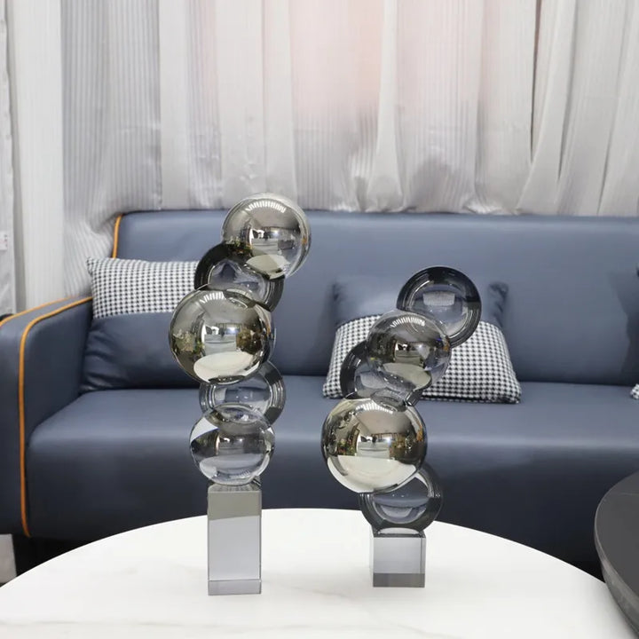 Stacked Glass Ball Sculpture – Modern Geometric Home Decor