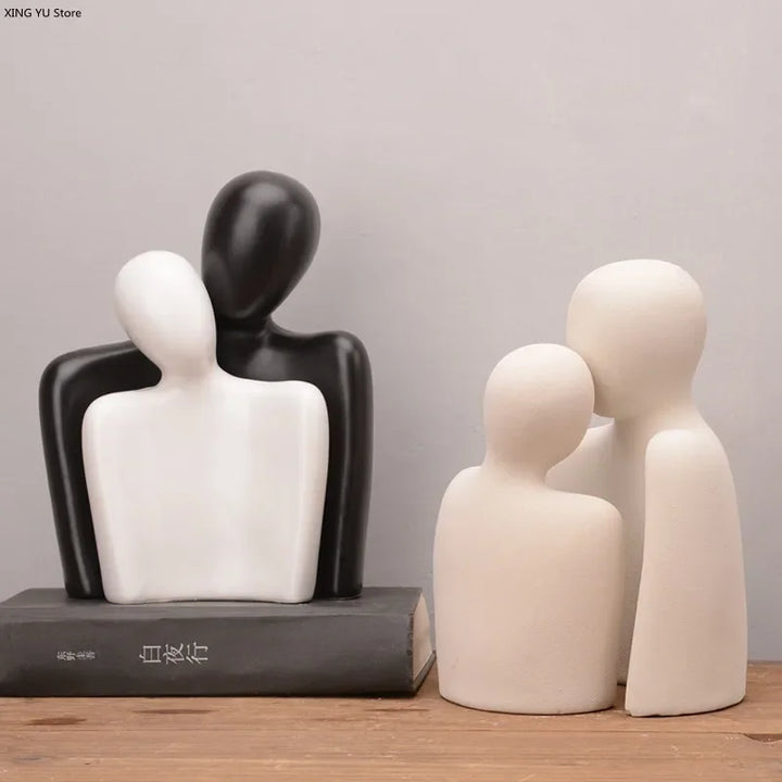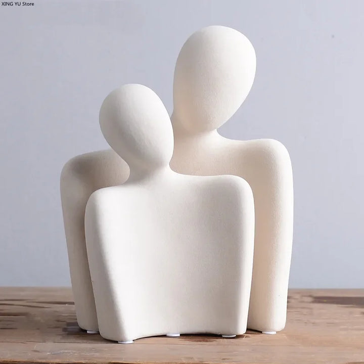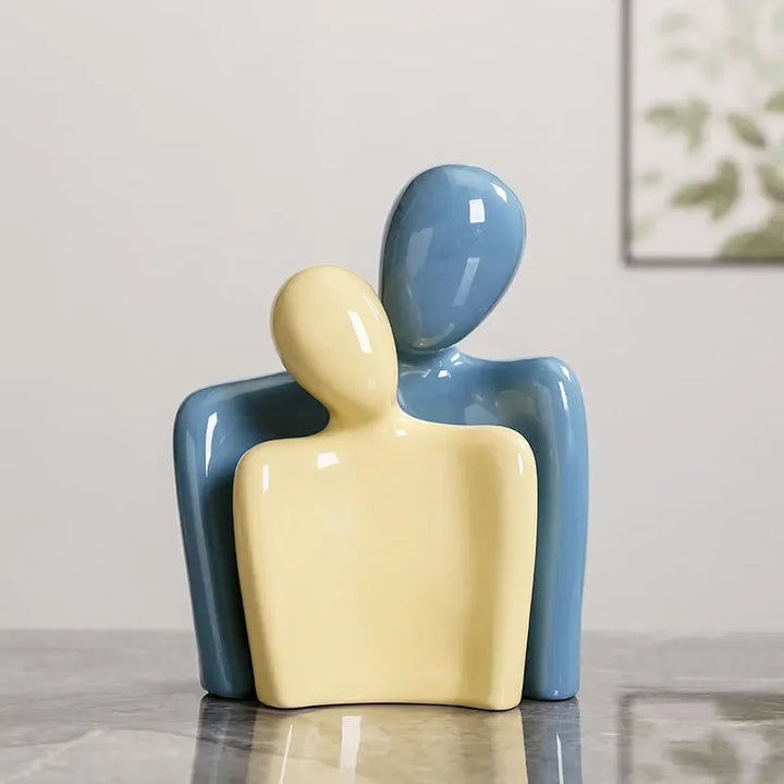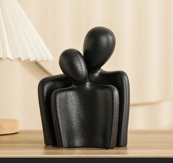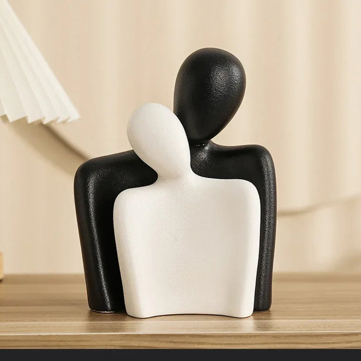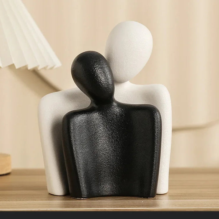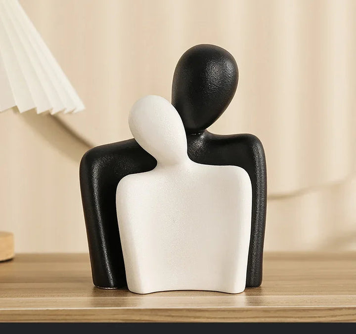 Abstract Hugging Couple Statue – Modern Ceramic Home Decor