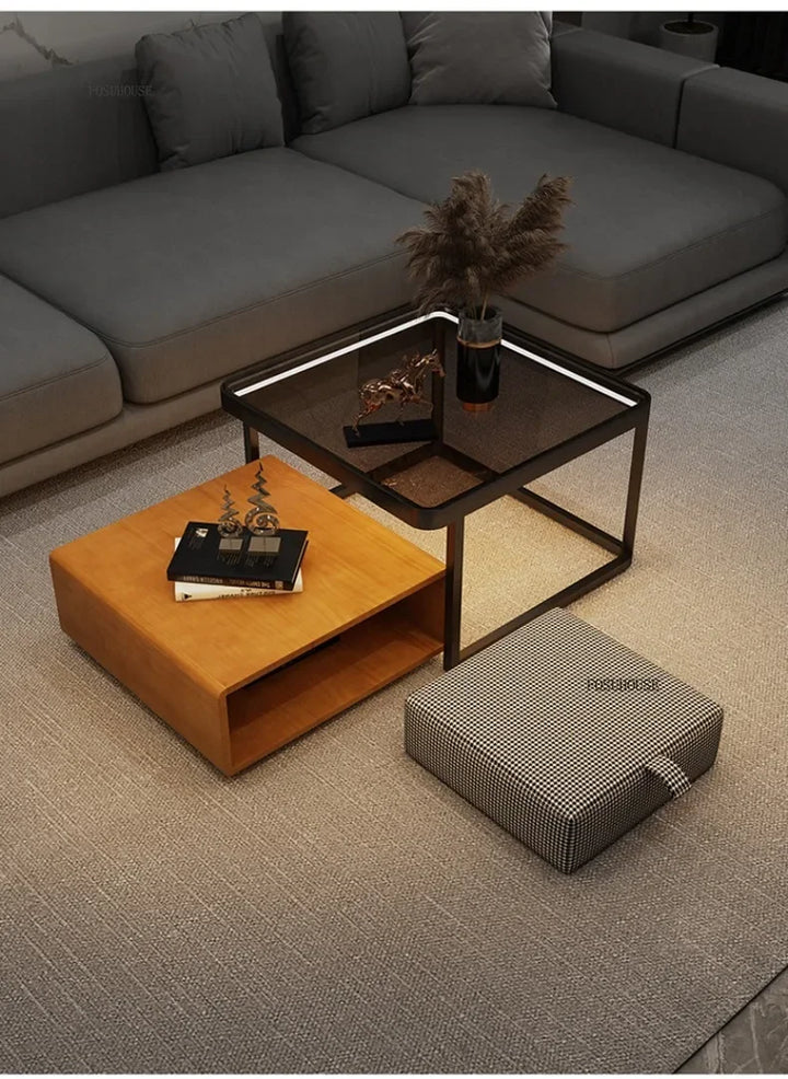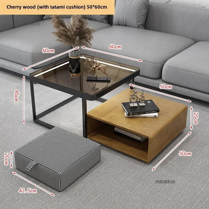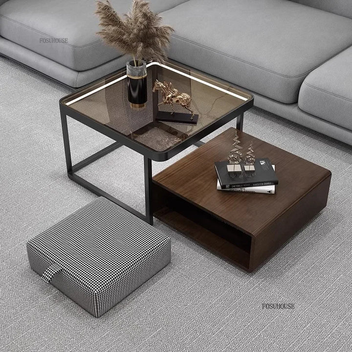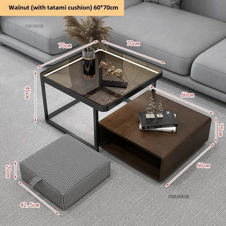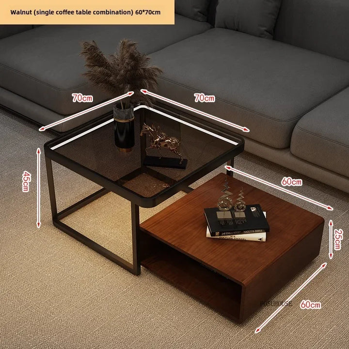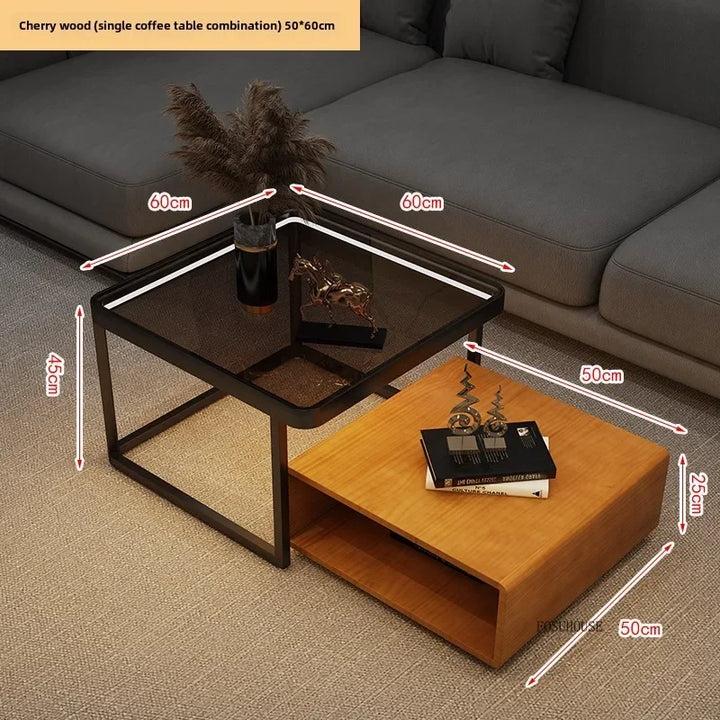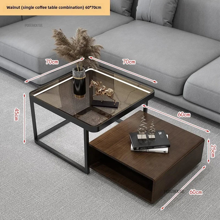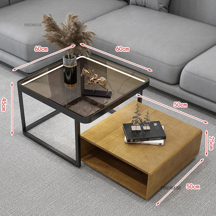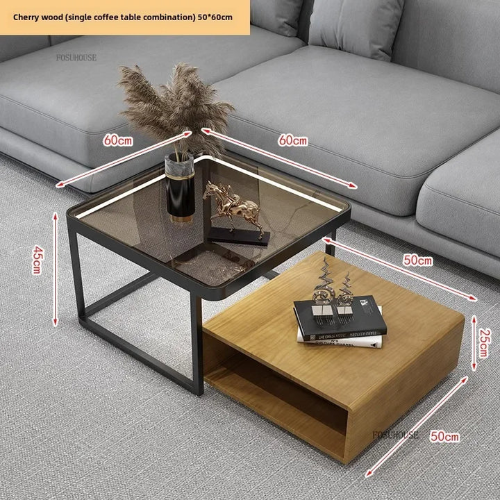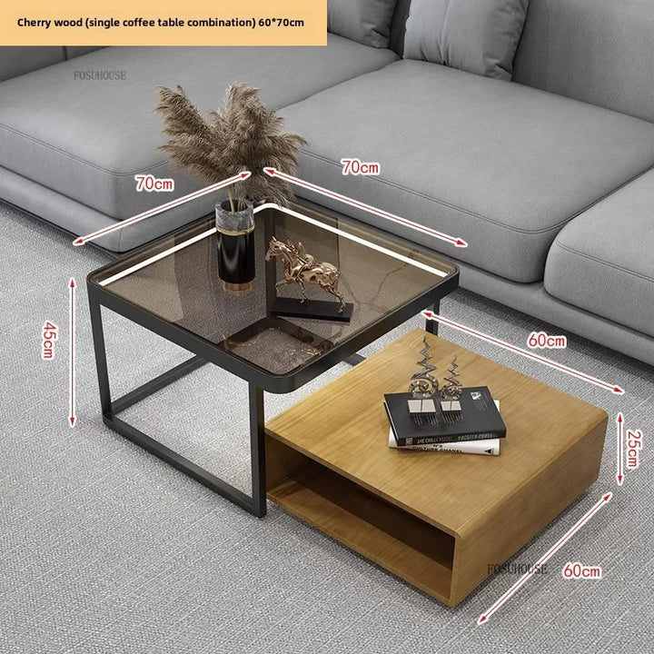 Italian Square Coffee Table – Solid Wood & Glass Light Luxury Design