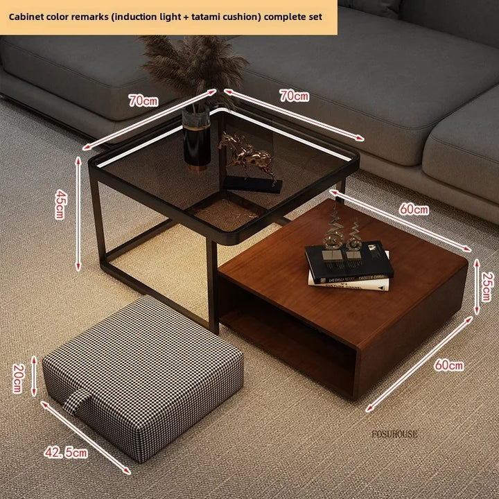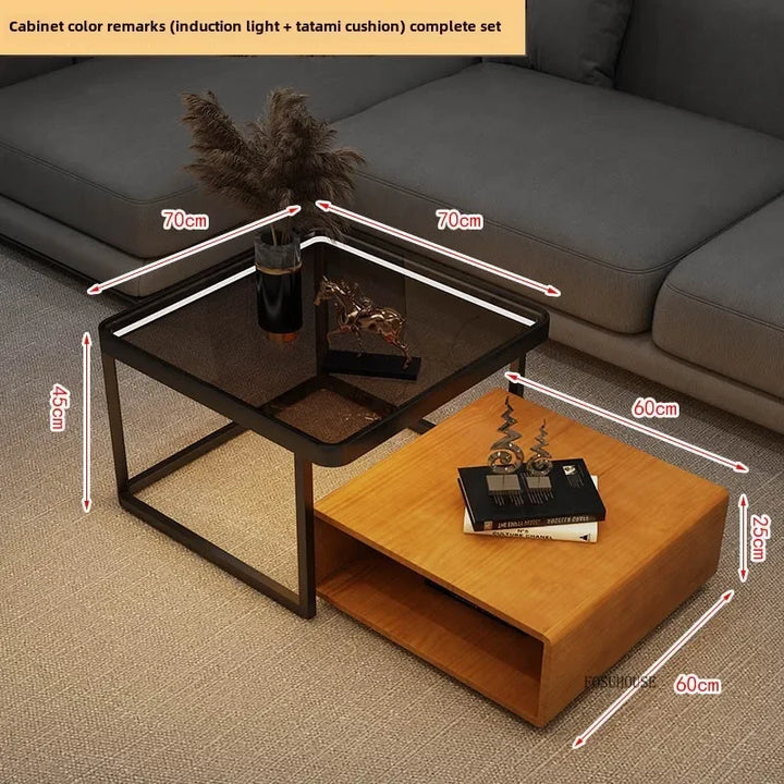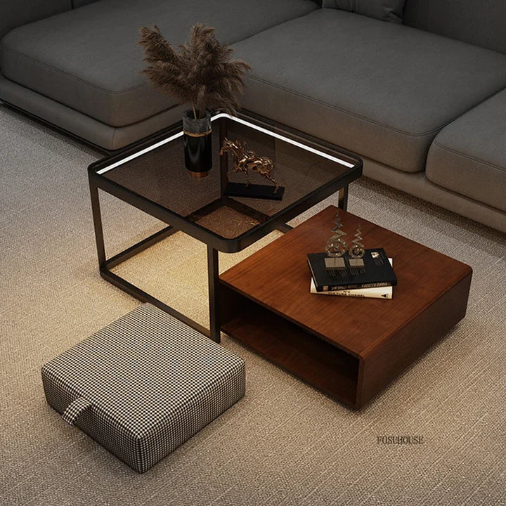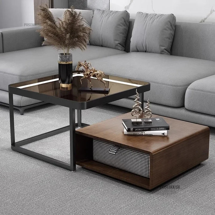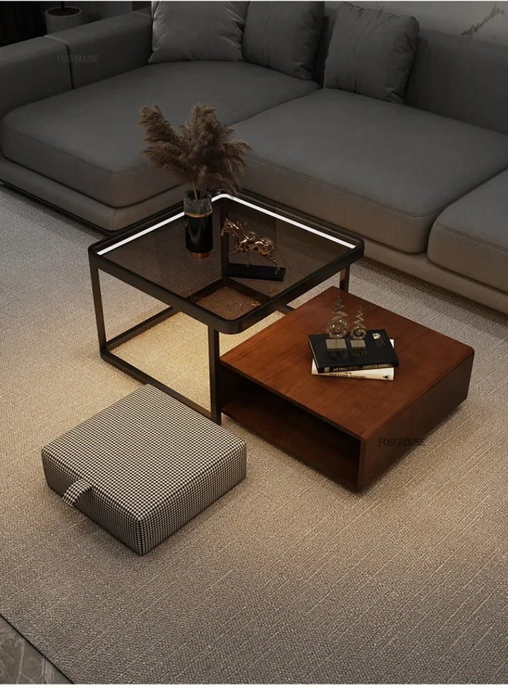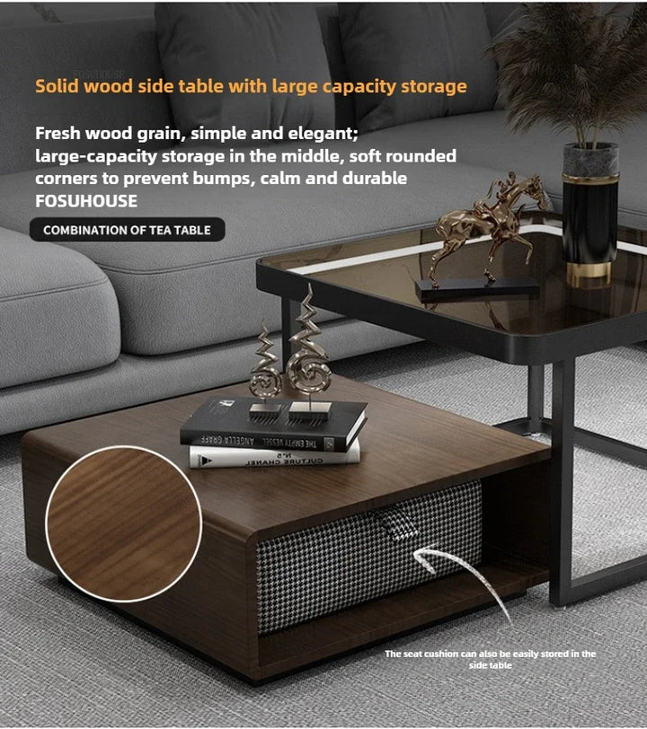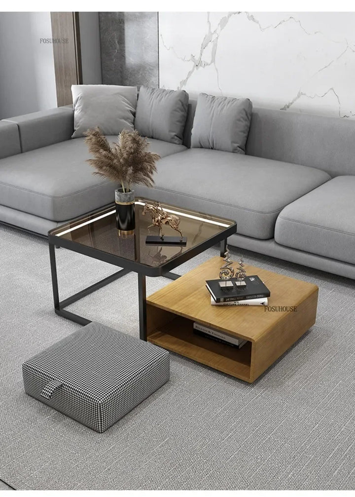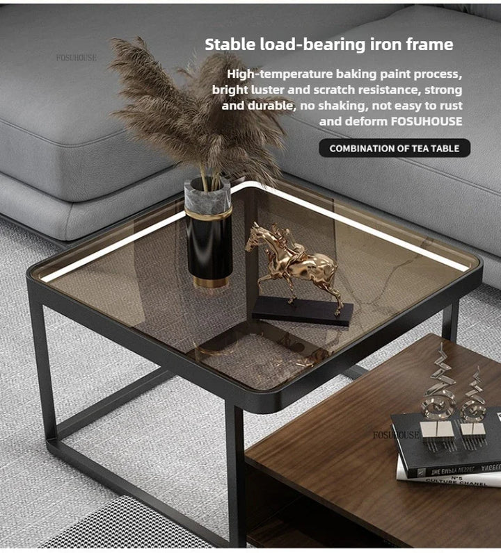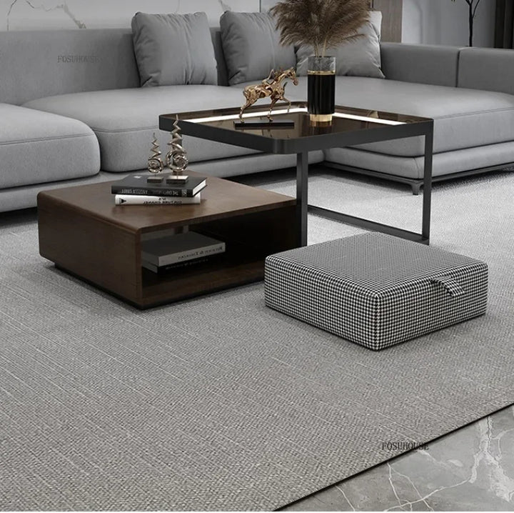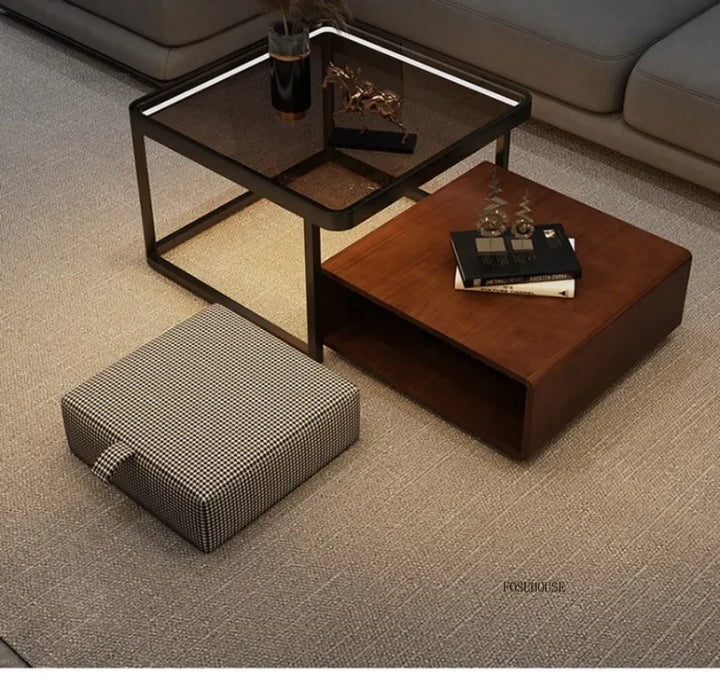 Italian Square Coffee Table – Solid Wood & Glass Light Luxury Design