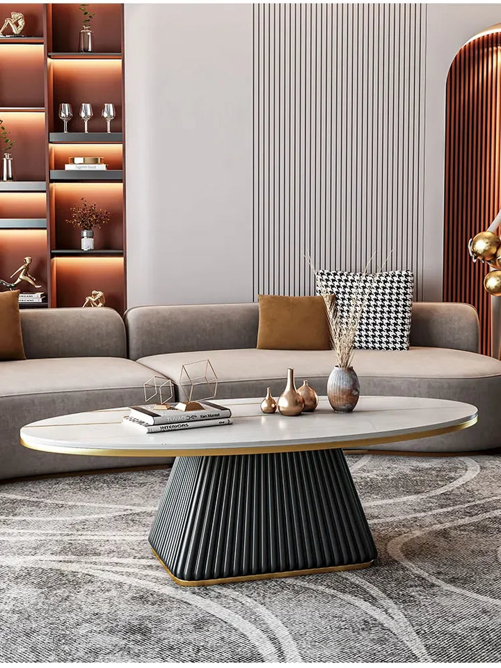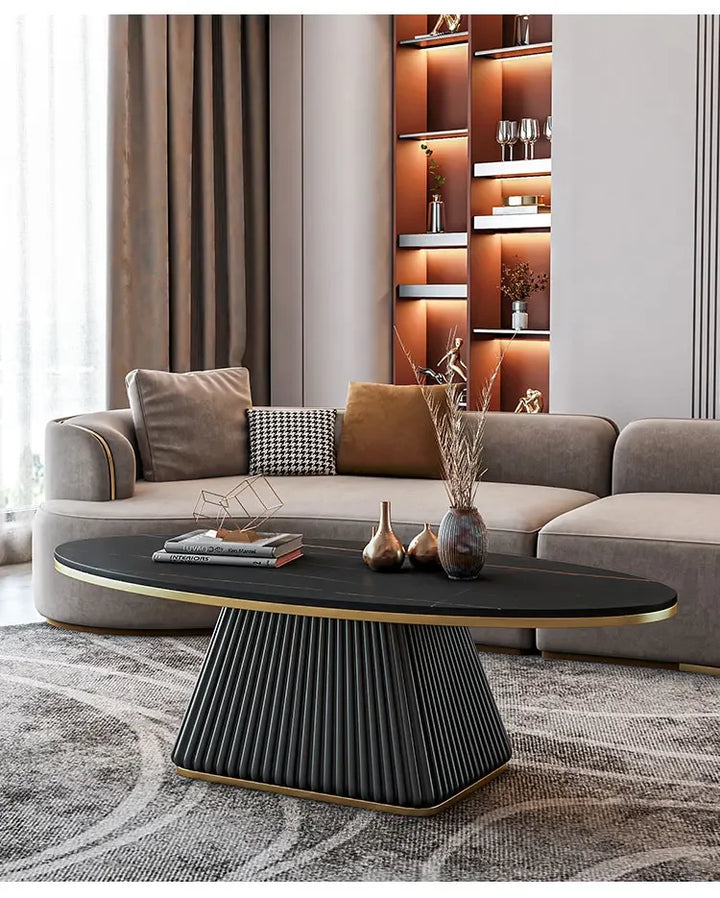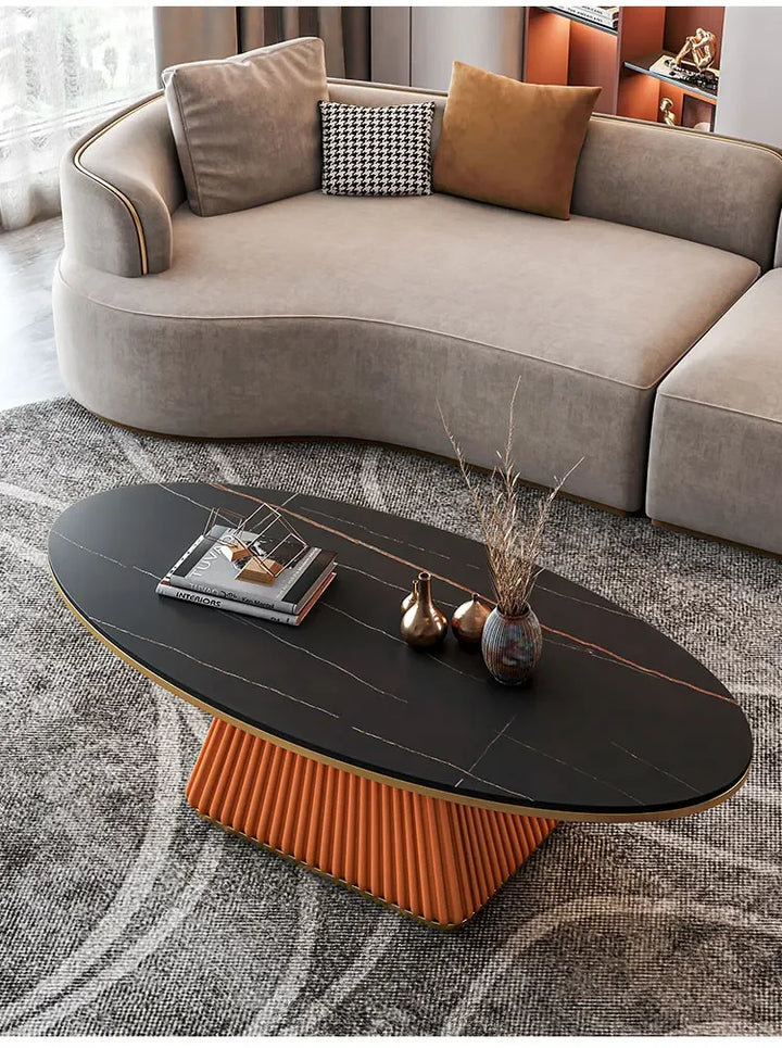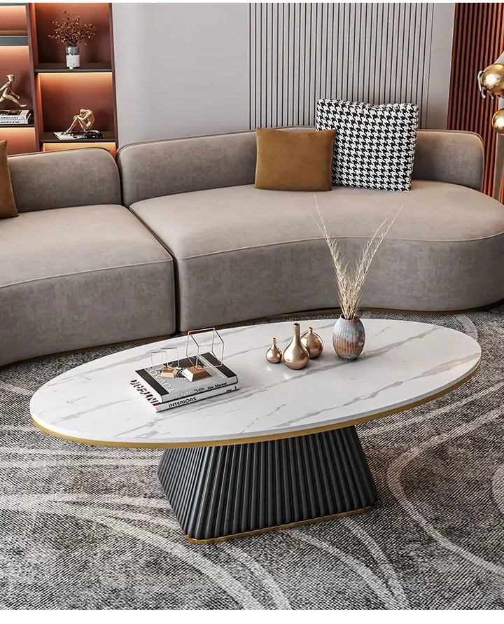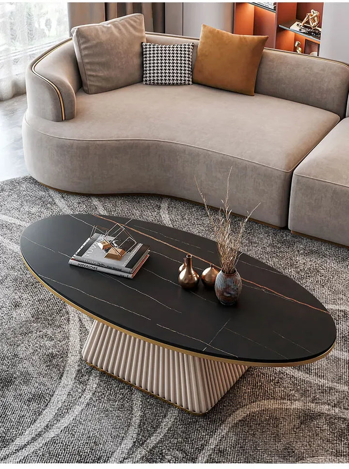 Modern Oval Rock Slab Coffee Table – Designer Minimalist Style