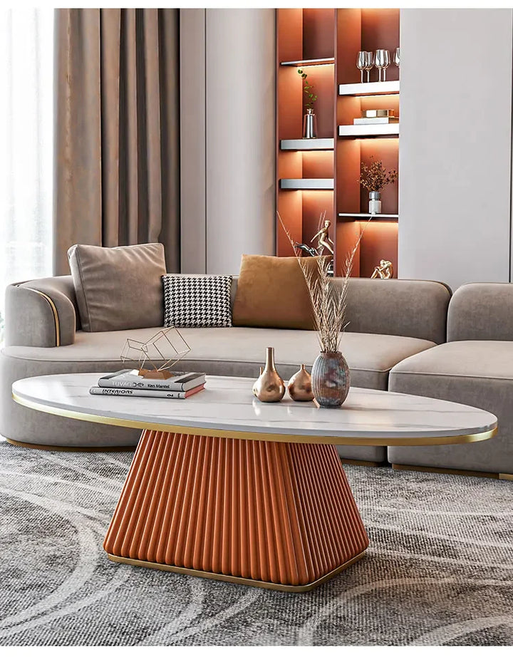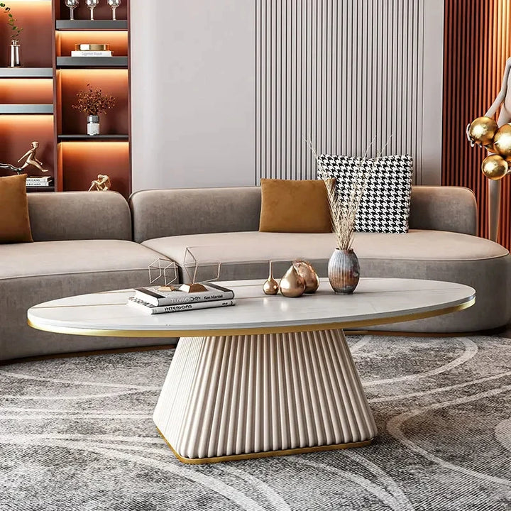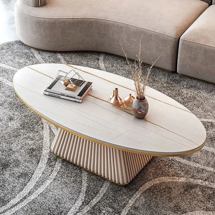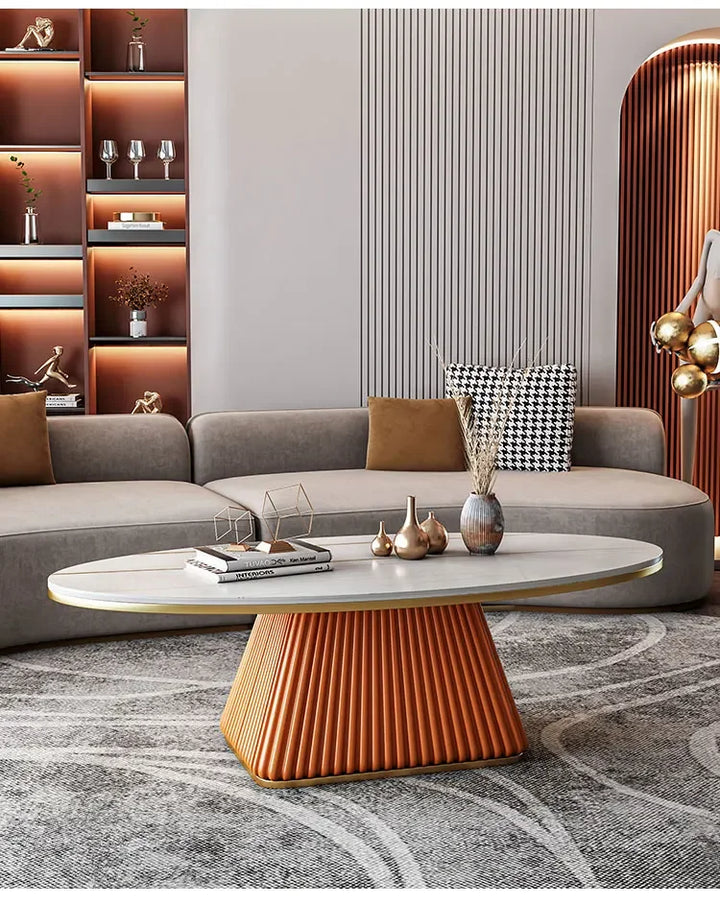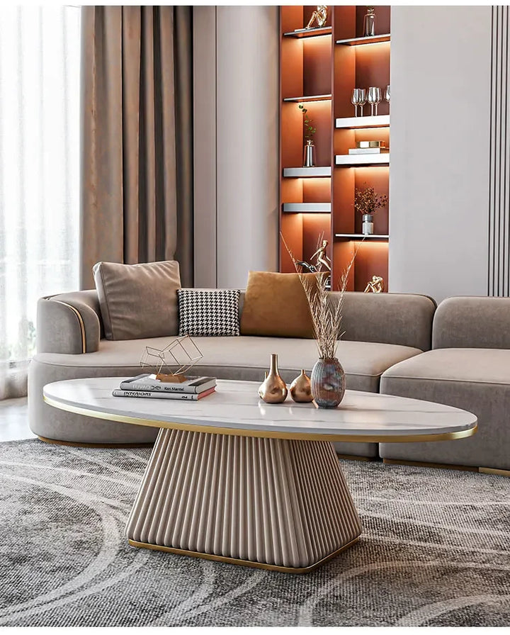 Modern Oval Rock Slab Coffee Table – Designer Minimalist Style