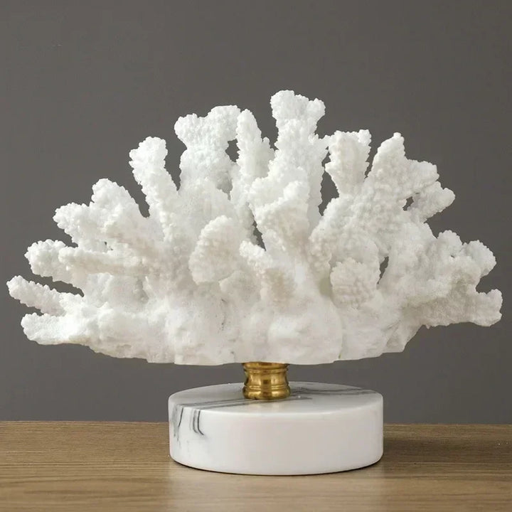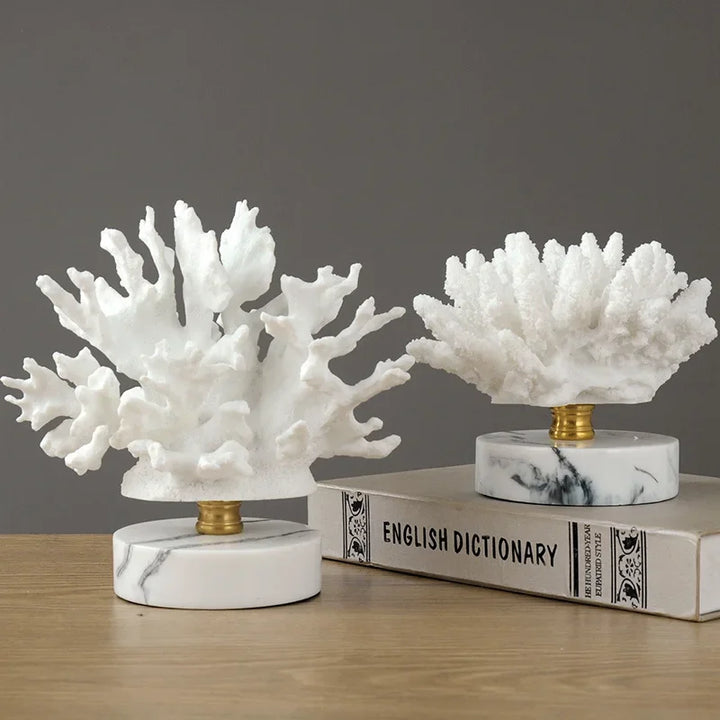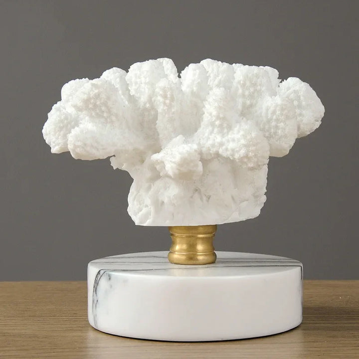 White Resin Coral Sculpture – Modern Decor on Marble Base