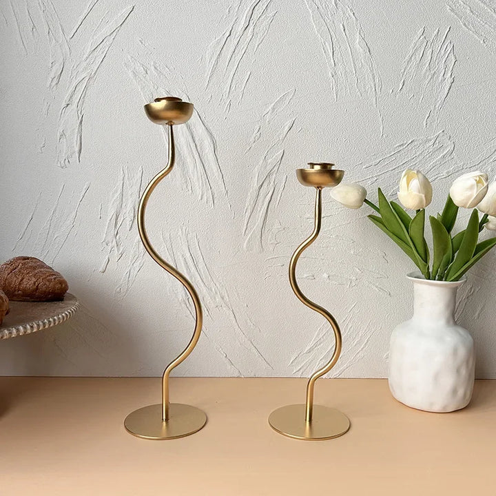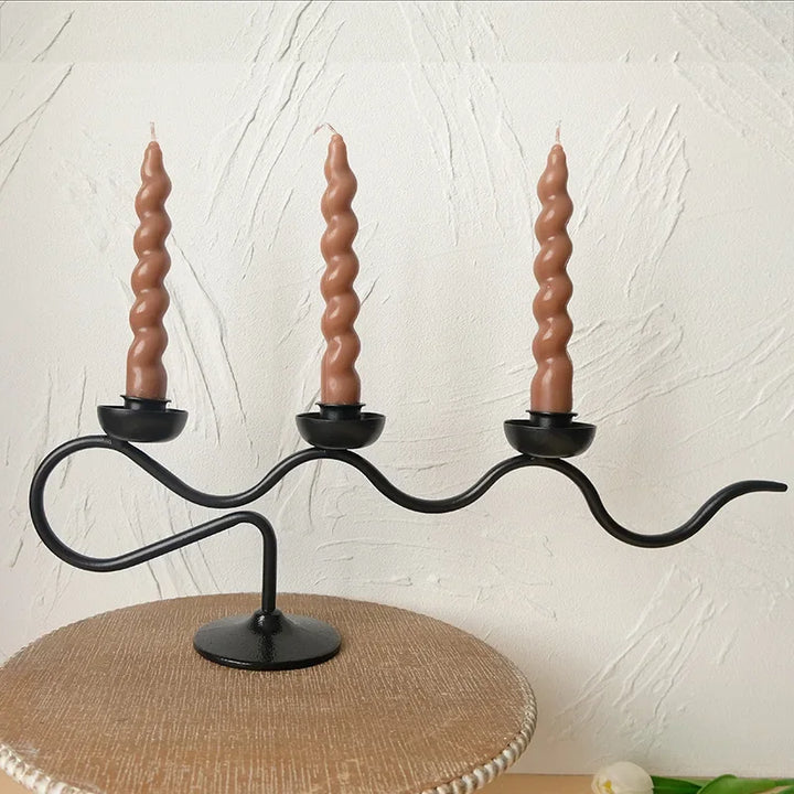 Nordic Black Metal Candleholder – Wavy Iron Candelabra Decor