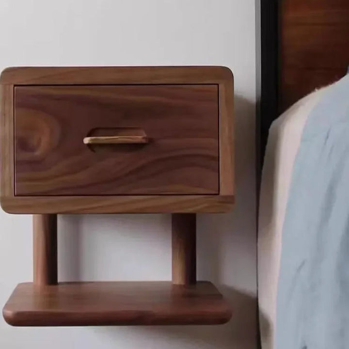 Black Walnut Floating Nightstand – Italian Solid Wood Wall Table