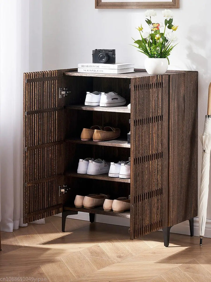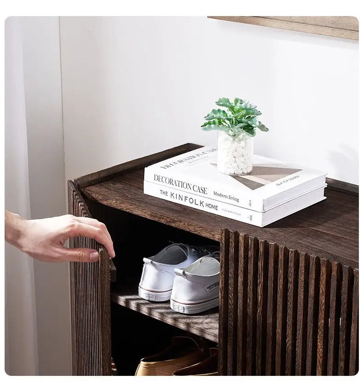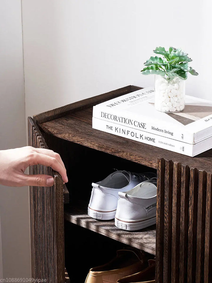 Solid Wood Shoe Cabinet – Light Luxury Entryway Organizer