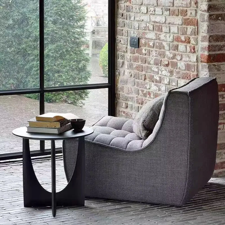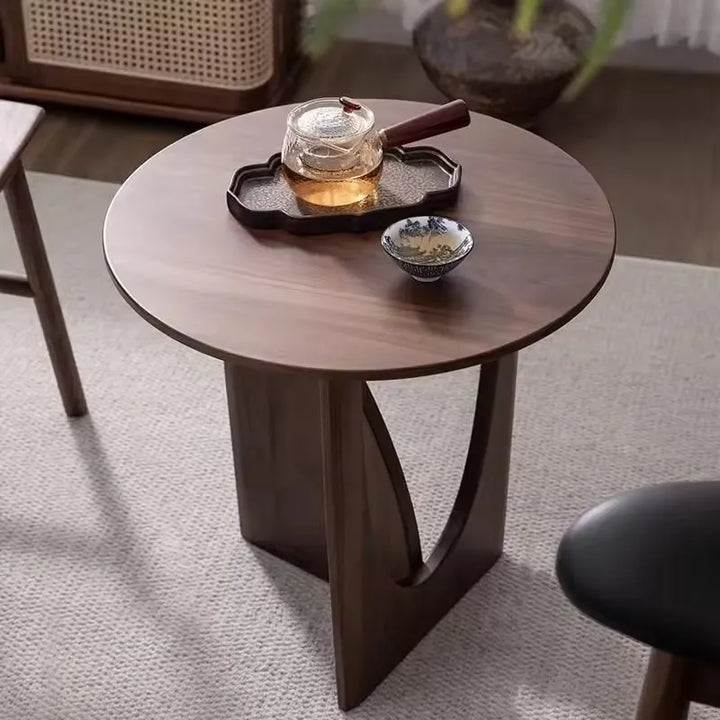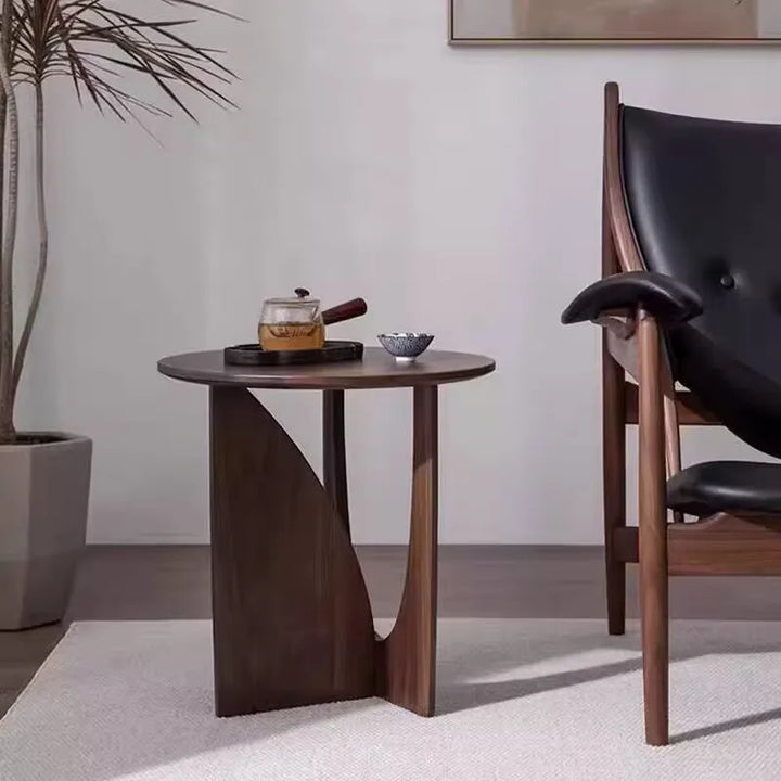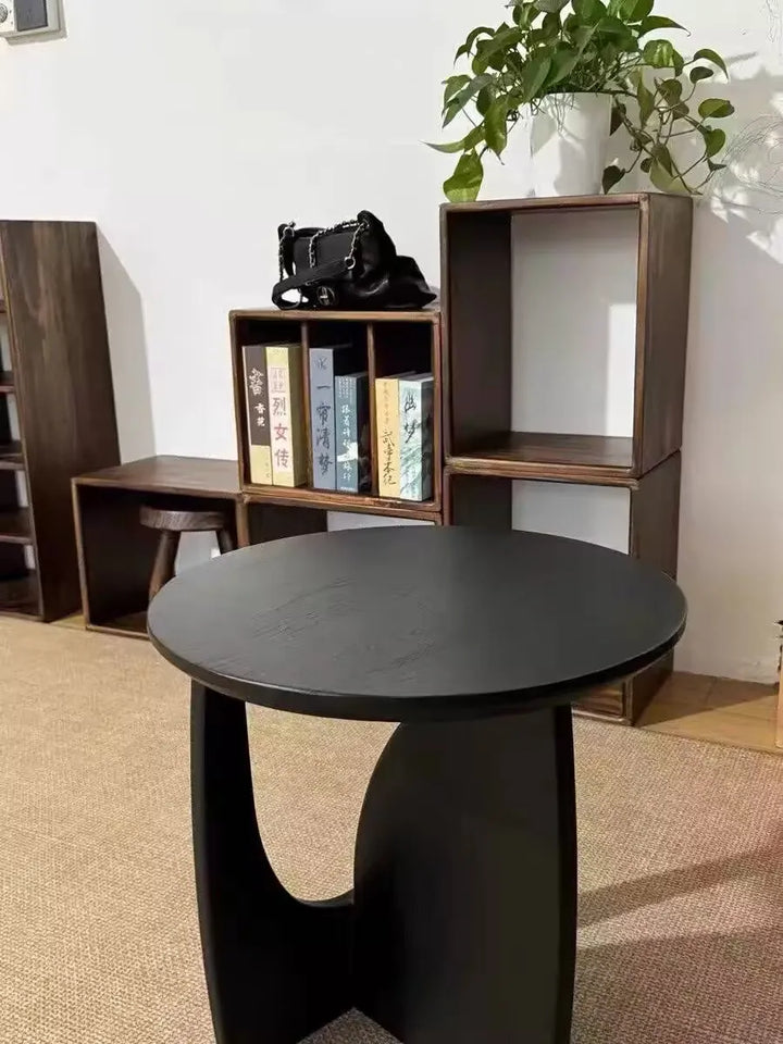 Nordic Solid Wood Coffee Table – Black Round-Edge Side Table