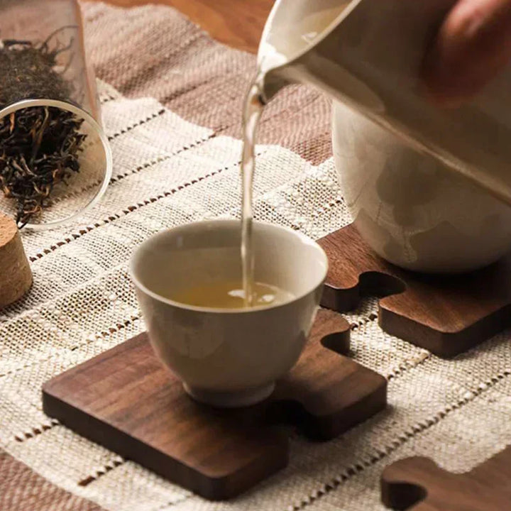 Solid Walnut Wood Coaster – Heat-Resistant Jigsaw Table Protector