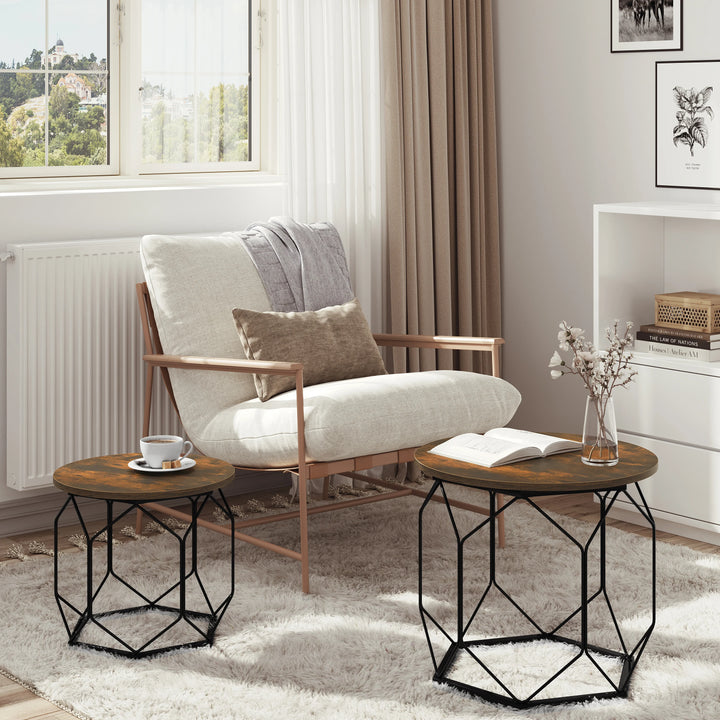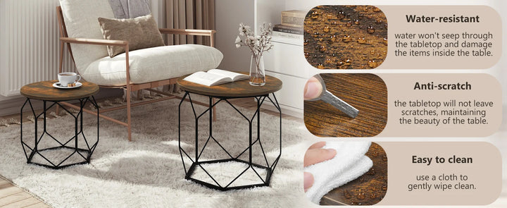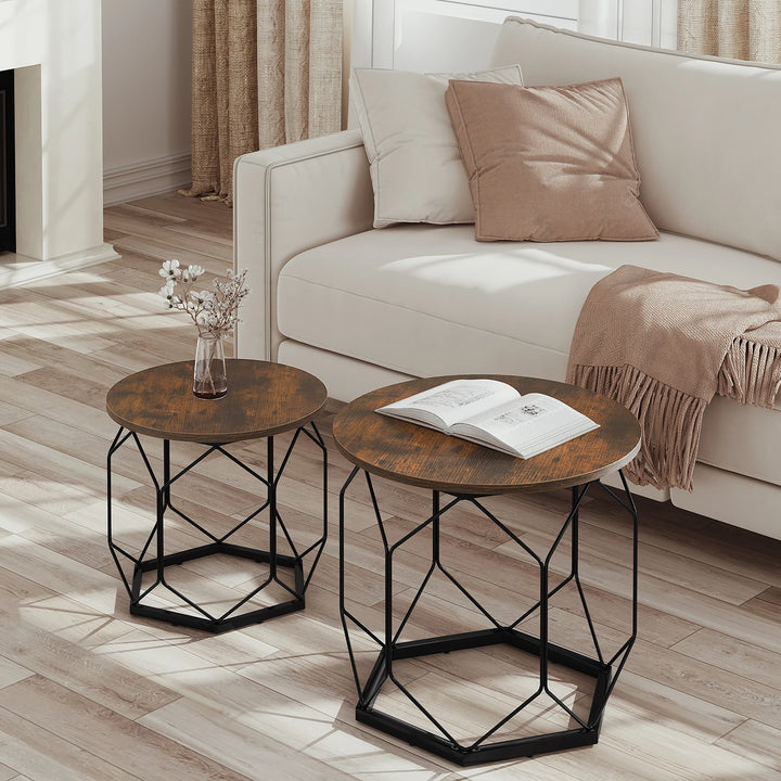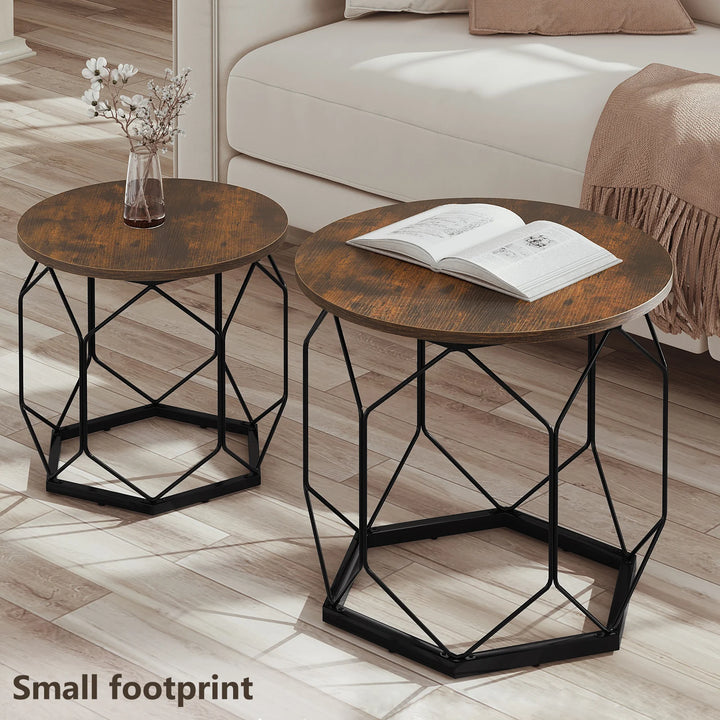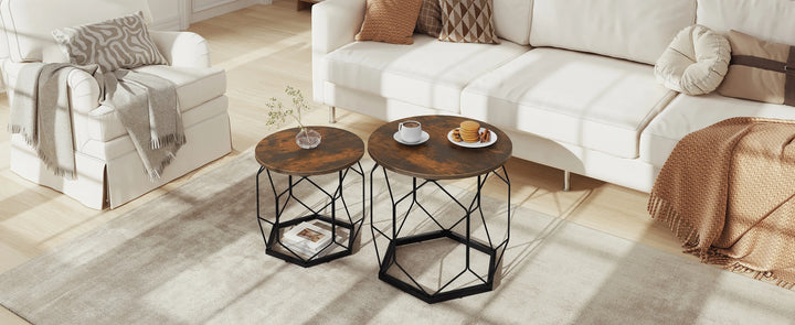 WOLTU Round Coffee Tables Set – Metal Frame with Storage