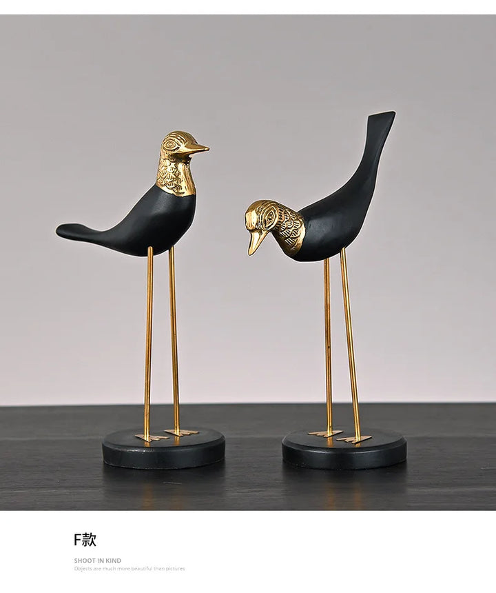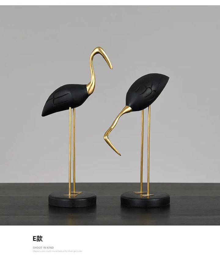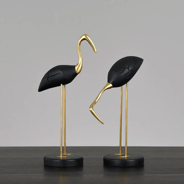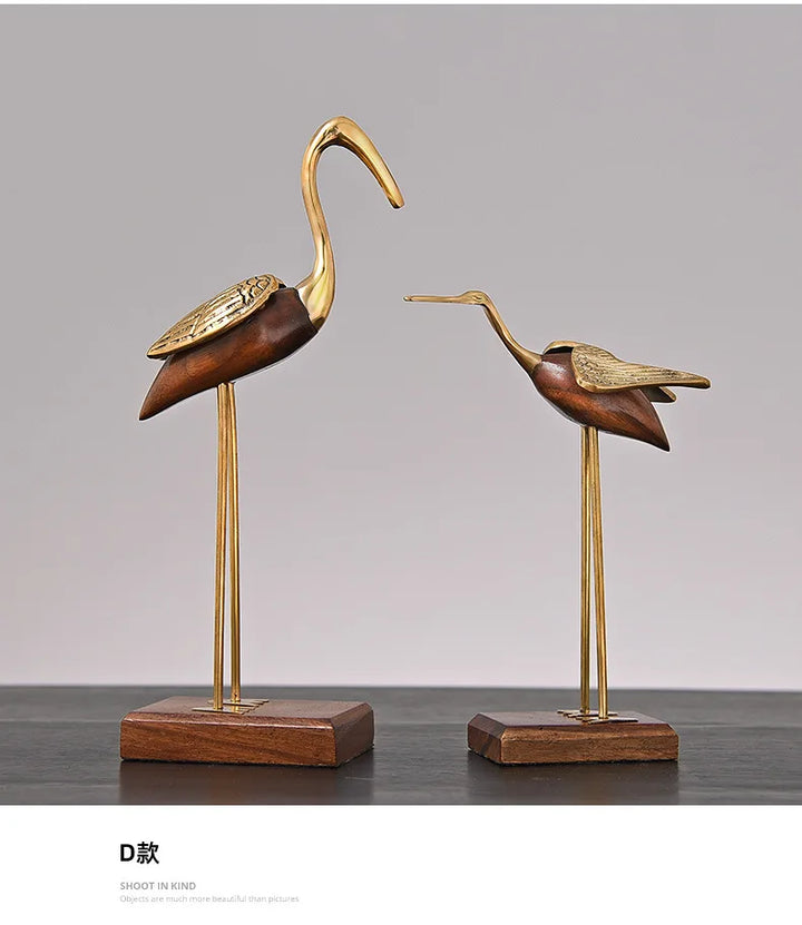 Wood & Brass Crane Sculpture – Elegant Bird Figurine Decor